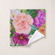 Diseño floral acuarela con rosas, peonías, cosmos, dahlia, tulipanes, flores de iris. Púrpura, rosa, blanca, amarilla, rosa rubor, verde. Colores audaces y saturados.