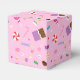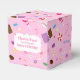 ¡Envíe a sus invitados con una nota dulce con esta caja de favores con temática dulce! El patrón incluye varios caramelos, como copas de lona, caña de caramelo, chocolate, barras de chocolate, dulces de maíz, caramelos envueltos en torres y rayas. La paleta de colores dulce y ondulado, en su mayoría rosa y morado, lo convierte en un gran favorito para una ducha de bebé o una fiesta de cumpleaños para un chica.