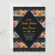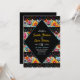 Trae una elegancia vibrante a tu celebración con esta colorida invitación a la Fiesta floral con flores multicolores brillantes emparejadas con intrincados acentos de encaje negro. Los floridos floridos pintados a mano en tonos vivos de rojo, amarillo, rosa, azul y naranja crean un marco festivo y alegre, mientras que los atrevidos detalles de encaje negro aportan un toque de sofisticación romántica. Este sorprendente contraste entre florales vibrantes y encajes móviles le da un diseño único y llamativo, perfecto para parejas que planean un boda inspirado en una fiesta animada, elegante y culturalmente rica.
