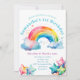 Invitación colorida con un arcoiris acuático y un tema estrella en tonos vibrantes. Perfecto para el primer cumpleaños de una niña pequeña, pero también para niños de 3, 5 y 7 años. Sencilla y alegre, esta invitación marca el tono para una celebración alegre!