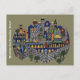 Tomé una fotografía de una placa de cerámica hecha a mano, pintada a mano. Estos son artículos populares hechos por los armenios en Israel. Este plato muestra la Ciudad Antigua de Jerusalén, Israel, pintada de colores y con un fondo verde oliva. El título de la parte delantera y la descripción de la parte posterior de la tarjeta postal están ambos en forma de plantilla, lo que le facilita reescribir estas palabras si lo desea.