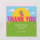 De la mágica colección de hadas, esta tarjeta de agradecimiento de esta colorida y moderna fiesta de cumpleaños de chicas es la manera perfecta de hacer saber a la familia y amigos cuánto se apreció su asistencia. La tarjeta de agradecimiento se puede personalizar con la inclusión del nombre del chica de cumpleaños. El mensaje de agradecimiento de diseño se puede mantener tal como está, editar o borrar. La tarjeta contiene mágicas princesas de hada, un gran "gracias" con letras rosas y un hermoso cielo azul soleado.