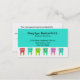 Carta de negocios de dentistas coloridos hecha en aguamarina, con una banda blanca en el fondo, con una línea de dientes alegres personalizados coloridos. El texto en negro es completamente personalizable y listo para personalizar para su práctica dentista pediátrica.