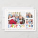 Divertido y festivo Feliz Año Nuevo está escrito en colores alegres para un saludo lúdico que incluye tres fotos de tu familia.