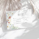 RSVP con estilo con nuestra Colorida tarjeta RSVP Boda de Flor Silvestre. Esta exquisita carta presenta un diseño único que muestra un marco encantador en el frente, adornado con delicadas flores silvestres coloridas, y amapola, todo traído a la vida con una suave y elegante técnica acuarela. En el reverso de la tarjeta hay un pintoresco prado de flores silvestres que crea un hermoso contraste. La Colorida tarjeta RSVP Boda de Flor Silvestre sirve no sólo como tarjeta de respuesta sino que también le agrega un toque de elegancia y belleza a su papelería boda. El diseño, inspirado en la naturaleza, capta el romanticismo de un prado floreciente y marca el tono para que los huéspedes se unan a su alegre celebración. Con la opción de personalizar, puede incluir la dirección de la pareja en la parte posterior de la tarjeta, garantizando un proceso RSVP sin problemas y conveniente para sus huéspedes. Los detalles del personalizable le dan un toque personal a la tarjeta, haciéndola única suya. Complete su Colorida Colorful Wildflower Meadow Collection incluyendo nuestras tarjetas RSVP, coordinando perfectamente con el resto de la colección. La continuidad del diseño crea una experiencia cohesiva y encantadora para usted y sus huéspedes. Invite a sus seres queridos a responder con alegría y emoción usando nuestra Colorida tarjeta RSVP Meadow de flores silvestres. Deje que el encanto cautivador de este diseño haga que sus huéspedes sientan la belleza y el romance de su próxima celebración. Solicite hoy mismo sus tarjetas RSVP Colorful Wildflower Meadow personalizadas y garantice un proceso de respuesta elegante y elegante para su boda. Que esta exquisita carta sea un reflejo de tu amor y atención al detalle.