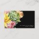Elegante tarjeta de visita acuarela Floral con fondo negro - Perfecto para profesionales creativos Dé una primera impresión audaz y sofisticada con esta suculenta marca de color de agua moderna tarjeta de visita floral con un fondo negro dramático. Suculentos elementos florales de color rosa, amarillo, azul claro, verde azulado, verde que se mezcla vívidamente con el lienzo oscuro, mezclando el encanto artístico con la elegancia moderna. El diseño minimalista y llamativo ofrece amplio espacio para tu nombre, profesión y detalles de contacto, equilibrando con esfuerzo lo creativo y profesional. Ideal para personas en profesiones creativas y de diseño avanzado, incluyendo: Organizadores de eventos floristas Coordinadores de Bodas Dueños de Boutique Artistas maquetas Estilistas de moda Fotógrafos Artisans Diseñadores de interiores entrenadores Estilo de vida Diseñadores de estacionería Pequeños propietarios de una marca femenina o inspirada en la naturaleza Ya sea que esté asistiendo a eventos de networking, exposiciones de novias, o simplemente conectándose con nuevos clientes, esta tarjeta de negocios artística le asegura que destaca con estilo y estilo. Imprimido en material de cartón de alta calidad con acabados opcionales mate o brillante, es la combinación perfecta de belleza y profesionalismo.