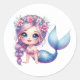Divertida, vibrante, colorida Sirena Pegatinas Bonito Sirena con flores en el pelo. Pegatinas amables para todas tus ideas estacionarias, Fiestas o de redacción. Pegatinas para todas las ocasiones.