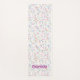 Contenti colorido - puntos redondos multicolores con fondo blanco y violeta y letras violetas