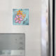 Vibrantes daffodils estilizados y hojas de helecho decoran este imán frigorífico en tonalidades frescas de azul verde azulado plateado, lavanda y melocotón. Inspirado por los patrones de henna mehndi, este diseño floral hace una obra de arte única y coleccionable para exhibirla en tu hogar, escuela o lugar de trabajo.