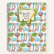 Utensilios de cocina coloridos patrón de doodle y etiqueta de tarjeta de receta que puede personalizar con un nombre y texto. Magnífico portátil para realizar el seguimiento de sus recetas caseras favoritas.