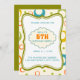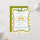 Este colorido fondo de patrón con el texto de la invitación en un bello marco verde se ve creativo. El elemento de nube retro hace que la carta sea linda y dulce. Esta tarjeta es totalmente personalizable para modificar el estilo, el texto, el tamaño y los colores. Puede desplazarse por los elementos de diseño para adaptarse a sus necesidades.