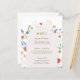 Esta hermosa carta de estilo arco floral es perfecta para celebrar primavera o verano. El diseño presenta un marco de flores silvestres coloridas con delicados prados de flores silvestres y le dará un ambiente alegre y primaveral a la ocasión. ¡Celebra con estilo esta magnífica carta de flores silvestres!