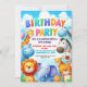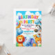 Invite a los amigos de su hijo a una inolvidable fiesta de cumpleaños con temática de zoológico con esta adorable invitación que incluye un alegre grupo de animales del zoo bajo un cielo azul brillante. Perfecto para los niños amantes de los animales, este encantador diseño le da un toque divertido y atrevido a cualquier celebración.