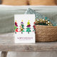 Colección de flores y hojas de acuarela de colores vivos incrustadas en las formas del Árbol de Navidad. Personalizado con mensajes de Navidades y datos del remitente que se cambian fácilmente.