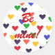 Pintura de corazones en los colores del arcoiris, con Be Mine! impreso en pegatinas. Se puede personalizar.