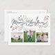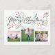 Esta tarjeta postal de 3 fotos, luminosa y colorida, presenta nuestros dibujos de follaje de vacaciones ilustrados y dice "Feliz Navidad" en un guión moderno. Viene con un patrón de coincidencia en el reverso para una tarjeta especial extra.