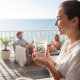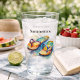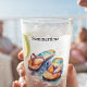 pintura acuarela de dos coloridas chanclas en una playa durante el verano