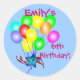 Un brillante y divertido ramo de globo vuela a través del aire unido a una estrella azul brillante y cinta roja. Personalice a estos coloridos pegatinas con cualquier nombre y edad de cumpleaños. Se muestra "¡6 Aniversario de Emily!" con un fondo azul claro. Cambia fácilmente todo el texto e incluso cambia el color así como el fondo azul. Simplemente haga clic en el personalizar y luego haga clic en "colores" para cambiarlo.