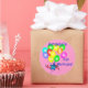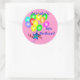Un brillante y divertido ramo de globo vuela a través del aire unido a una estrella azul brillante y cinta roja. Personalice a estos coloridos pegatinas con cualquier nombre y edad de cumpleaños. Se muestra "¡8 cumpleaños de Angela!" con un fondo rosa claro. Cambia fácilmente todo el texto e incluso cambia el color así como el fondo rosado. Simplemente haga clic en el personalizar y luego haga clic en "colores" para cambiarlo.