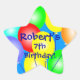 ¡Una estrella pegatina para la estrella del día! Un brillante y divertido ramo de globo colorido listo para su personalización con cualquier nombre y edad de cumpleaños. Se muestra "¡Séptimo cumpleaños de Robert!" ¡Una gran ocasión especial diversión y pegatina colorida!