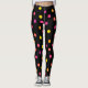 La polka colorida marca las leggings. Los puntos de neón sobre fondo negro.