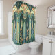 Bonitas cortinas de ducha con columnas de estilo Art Déco en tonos verdes.