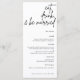 Este menú boda presenta un precioso guión con las palabras "come, bebe y te cases" para mostrar a tus invitados el elegante menú boda.