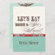 ¿Buscar una gran invitación nupcial de la ducha? Las fuentes elegantes y de la diversión anuncian el mensaje, "nos dejaron comer, beber y conseguir casados!" en un conjunto caprichoso delicioso de la invitación de la boda. En una paleta de colores caliente, retra del rojo del vintage, azul de la aguamarina, poner crema y marrón - es el mejor del vintage con una torsión moderna. La parte delantera tiene el texto y sus nombres con su boda fechan. En el dorso son los dos ornamentos de la impresora con signo "&" elegante de la fuente de la caligrafía de la mano y el texto "celebra con nosotros" en fuentes únicas y de la diversión junto con la información de la invitación de la ducha de su par. Hay una habitación completa de los productos disponibles con este diseño y podemos hacerlo en cualquier combinación de color que usted desee.