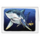 ilustracion de un tiburón alrededor que se comerá por un pequeño pescado del fumador - subtítulo: Coma el tiburón antes de que le coma