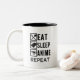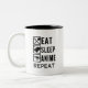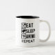 Coma la taza de café divertida del refrán de la repetición del animado del sueño