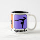 ¡Coma la taza de la gimnasia del sueño, con gráficos frescos en colores calientes y una silueta de un gimnasta! ¡Disponible en cualquier taza del estilo!