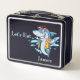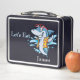 Una divertida caja negra de almuerzo Metalizado diseñada con el bebé Personalizado Shark diciendo que es hora de comer para los niños que puedes personalizar con el nombre de los niños