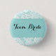 - Botón del fiesta de Bachelorette con la frontera azul del fondo y del acento del cordón.