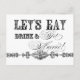 Las fuentes elegantes y divertidas anuncian el mensaje, "¡Comamos, bebamos y nos casemos!" en una magnífica y caprichosa postal de invitación a la doncella de honor. En una paleta de colores clara, negras y blancas, es lo mejor de la cosecha con un toque moderno. Añade tu mensaje personal al revés.