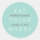 Vestir cualquier embalaje de la favorita de la boda con estos sellos pegatinas elegantes y fáciles de personalizar. Los nombres de la pareja y la fecha del boda se establecen entre la frase "come, bebe, cásate". Estas etiquetas de buen gusto son excelentes para la personalización de pequeñas bolsas de dulces, latas de menta, jarras de mermelada, cajas y botellas. La fiesta hágalo usted mismo favorece la brisa.