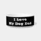 Comida y recipiente de agua con color de fondo negro y color blanco impreso con la frase de texto de la plantilla de personalizable Me encanta mi perro papá en Gorras, Camisetas y productos de Mascota de TheFabricSeal impreso en tienda a petición en Zazzle.com #ZazzleMade https://www.zazzle.com/store/thefabricseal ¡Todos los mascotas necesitan un bol personalizado de Zazzle! Impreso con nuestros diseños o personalizado con sus fotos, textos y diseños favoritos, a su mascota le encantarán nuestros tazones de cerámica al 100%. Los lavavajillas y los microondas aprobados son fáciles de mantener. Hay dos tamaños disponibles para la compra, medio y grande. Estos gorras, camisetas y productos mascotas divertidos te permitirán mostrar cuánto amas tu apoyo emocional y físico ayudando a padres y amigos. Este accesorio es un regalo perfecto para cachorros y perros adultos, hombres, mujeres, adolescentes y niños que poseen y aman un cachorro perfecto o un perro adulto adorable. Si eres el orgulloso propietario y te encantan estas increíbles criaturas y amigos entonces estos diseños son para ti además puedes complementarlos y transferirlos a nuestra enorme colección de otros productos que ofrecemos en nuestra tienda POD en Zazzle. Excelente para la mezcla y correspondencia de temas de diseño y productos. Míralos a todos. Por favor, revisa nuestros 400 + excelentes diseños originales y colecciones de productos de nuestra tienda de productos y Neckties Select Flagship. Excelentes selecciones de regalos para la familia, amigos y para usted, por supuesto. Todas incluyen opciones de personalización. Personaliza tu propio diseño, monograma, nombre, patrón, fotografía, cita o lema. Muchas gracias por elegir y comprar con nosotros. Agradecemos su apoyo. Disfruta de tu experiencia de compras. ¡Descúbrelos.