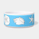 Cubeta de cerámica blanca para cualquier animal. A tu perro mascota, gato o iguana le encantará este bonito, un plato azul decorado con arte original que contiene estrellas de mar, un dólar de arena, conchas y otras conchas tropicales. No hay texto ni plantilla para este tazón. Dos tamaños para elegir.