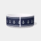 Este bol mascota azul de medianoche tiene una fila de anclas blancas alrededor del bol.