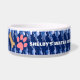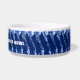 La obra original de ZoeSPEAK sobre este certamen de tazón de perro de aspecto brilloso es un patrón con un ambiente de costa. Hecho en azul marino y blanco, el tazón está bordeado por formas que parecen gotitas de agua en un patrón diagonal. En el centro de la banda hay un texto en blanco que dice "SHELBY'S WATER BOWL". Esto está configurado para personalizar con el nombre de su propio perro, o borrar si lo desea. A la izquierda del nombre hay una huella de pata rosa y un hueso de perro marrón claro. Éstos también se pueden mover o quitar según se desee. Una moda casual con vajilla coordinada para los humanos.
