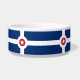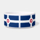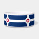 Bote con bandera de la ciudad de Indianápolis, Indiana; bandera azul con cruz blanca y círculo rojo con estrella blanca en el centro