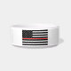 La bandera de la Línea Roja Delgada es un símbolo de apoyo para los bomberos. Es una versión modificada de la bandera estadounidense, donde las tradicionales franjas rojas son reemplazadas por rayas negras, y queda una sola raya roja. Esta única franja roja representa la valentía y el sacrificio de los bomberos. - La bandera se muestra a menudo para honrar a los bomberos caídos, mostrar apoyo a los bomberos activos y crear conciencia sobre los peligros del trabajo. Es una manera de expresar gratitud por los bomberos que arriesgan sus vidas para proteger a las comunidades. - Generalmente se entiende que es un símbolo más reciente de apoyo a los bomberos. Surgió como una manera de honrar y reconocer los sacrificios hechos por los bomberos, de manera muy similar a como la bandera de la Línea Azul delgada honra la aplicación de la ley. - El diseño es sencillo: una bandera norteamericana en blanco y negro con una única franja roja audaz. Esta única línea roja simboliza el coraje y la dedicación de los bomberos que arriesgan sus vidas para proteger a las comunidades. Es una representación visual de la "delgada línea roja" que se interpone entre el caos y la seguridad. - Aunque los orígenes exactos de la bandera podrían estar menos documentados que otros símbolos, su significado e impacto son claros. Es un símbolo de respeto, gratitud y apoyo a los bomberos, un recordatorio de su valentía y el papel vital que juegan en la sociedad. - Este trabajo no es elegible para los derechos de autor y, por lo tanto, es de dominio público porque consiste enteramente en información que es propiedad común y no contiene ninguna autoría original.