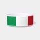 Este tazón mascota de bandera italiana tiene texto negro entre las dos banderas italianas. Puede editar el texto para mostrar el nombre de su mascota.