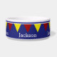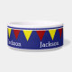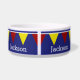Las filas de banderas rojas, blancas, y amarillas agitan a través de un fondo azul náutico sólido. ¡Personalice con su opción del nombre para un regalo especial!