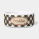 El negro y la crema de gingham decoran este bonito y rústico bol mascota. Personalizar este cuenco de comida mascota cambiando el nombre para adaptarlo a sus necesidades. El diseño es de arte original.