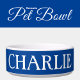 Comedero Blanco y azul profundo con un nombre de gato o per