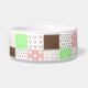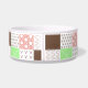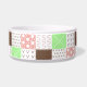 Cute personalizado y caprichoso tazón de perro perro con palo rosa, malva, marrón, borgoña y verde sabio y patrón de rayas. Colores cálidos de tierra.