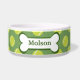 Superlindo tazón de comida para perros con divertidas pelotas de tenis y un hueso de perro con el nombre de tu perro en el hueso.