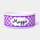 El tazón de perro cerámico personalizado del patrón de puntos de polka morado y blanco personalizado es una elección atractiva para un perro grande. Este fresco y único bol de perro polkadot hace un regalo encantador para tu mejor amigo.