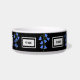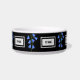 Un tazón mascota con hermosas imágenes de azulejos y textos. El fondo, las imágenes y el texto se pueden personalizar. Obra de arte original de W.B.