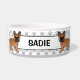 Comedero Bulldog rojo francés adorna caricatura perro y nom